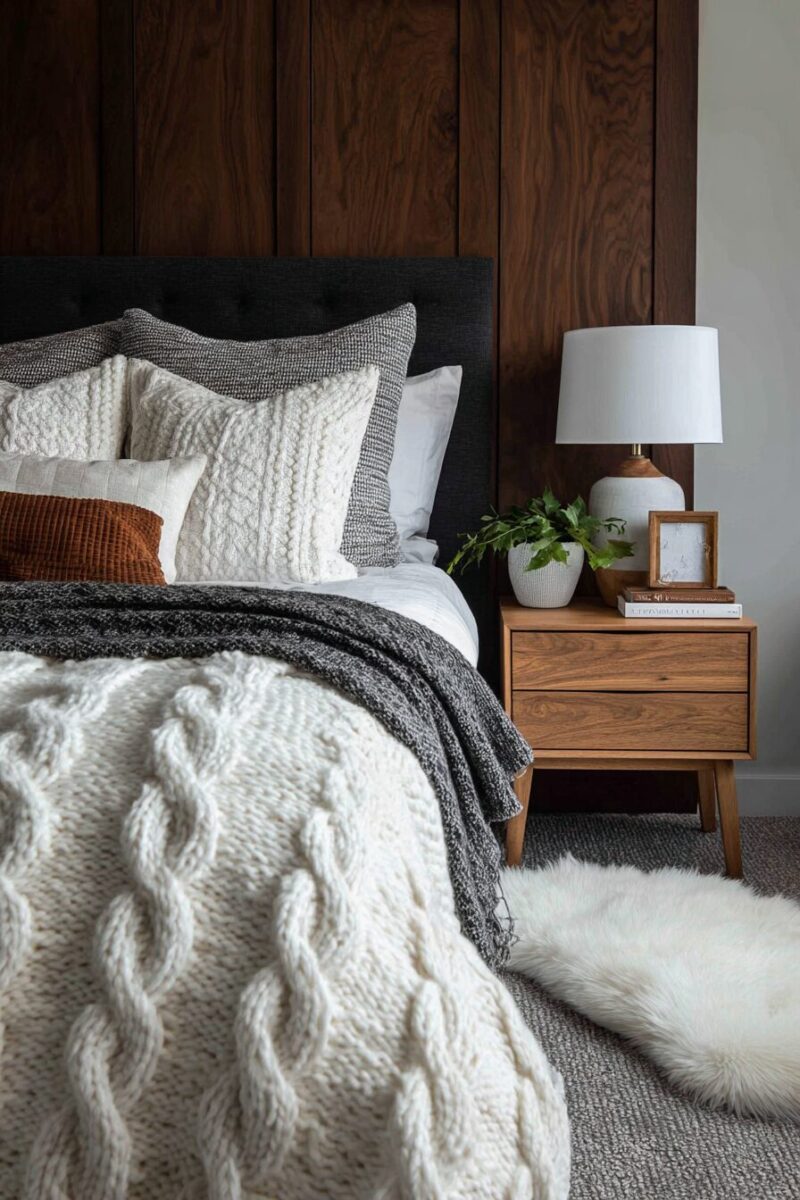 During colder months, cable knit accessories add warmth both visually and physically, making your bedroom feel like a cozy retreat.