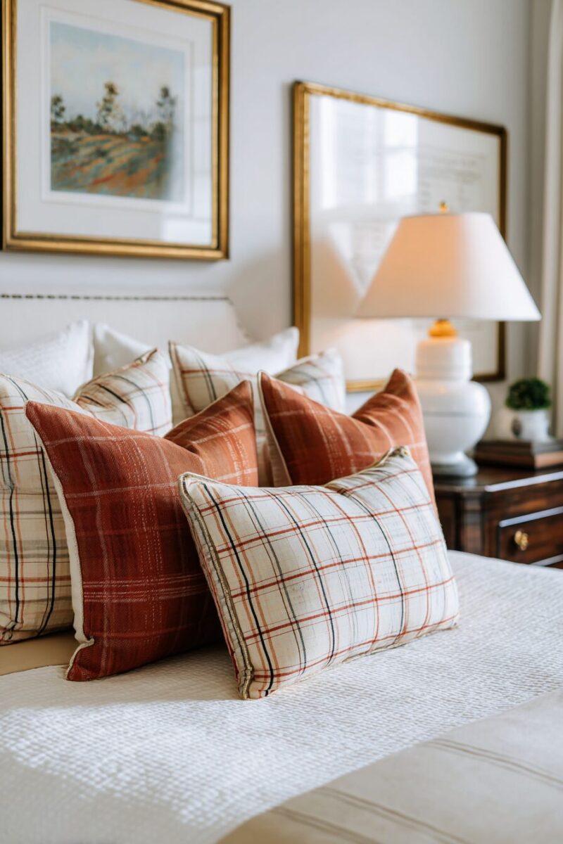 The key to successfully incorporating plaid pillows is understanding how to mix patterns without creating visual chaos in your bedroom.