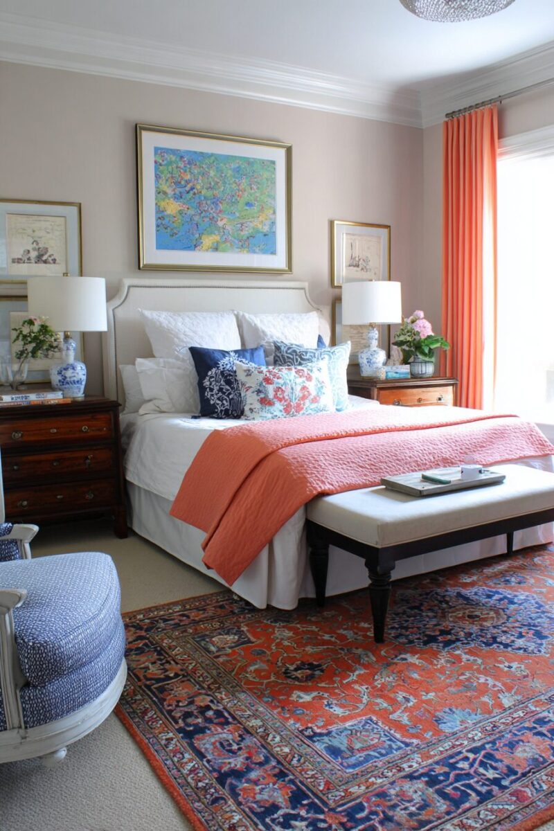 You can use rug layering to define specific areas within your bedroom, such as creating a cozy reading nook or highlighting the space around your bed.