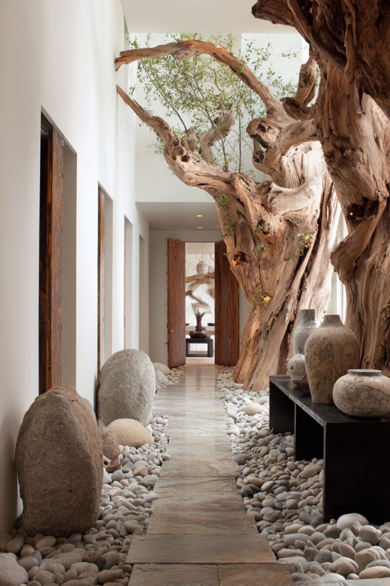 This timeless approach combines raw, natural elements with sleek contemporary design to create spaces that feel both grounded and sophisticated.