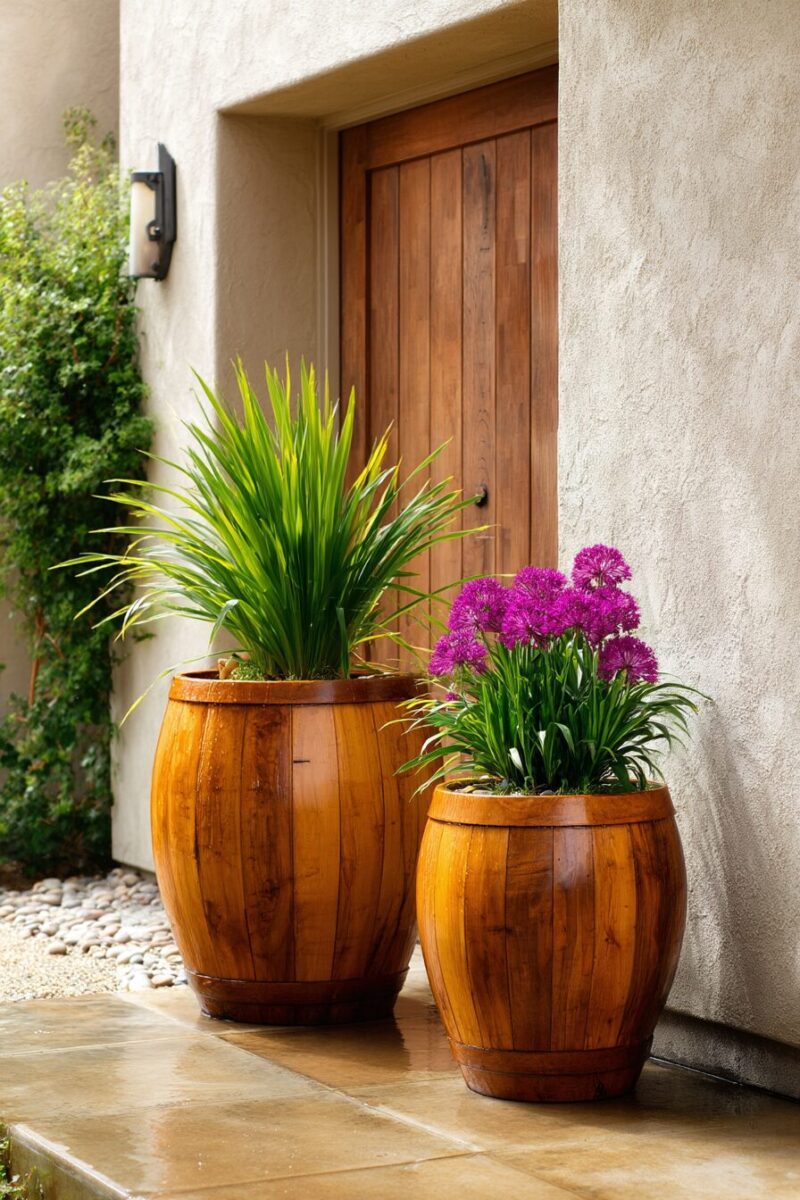 Decorative Rain Barrels with Built-in Planters