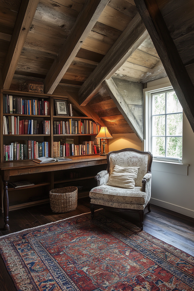 Subtle handcrafted elements envelop this nook in a nostalgic, pastoral atmosphere encouraging total escapism within literary worlds both familiar and new.