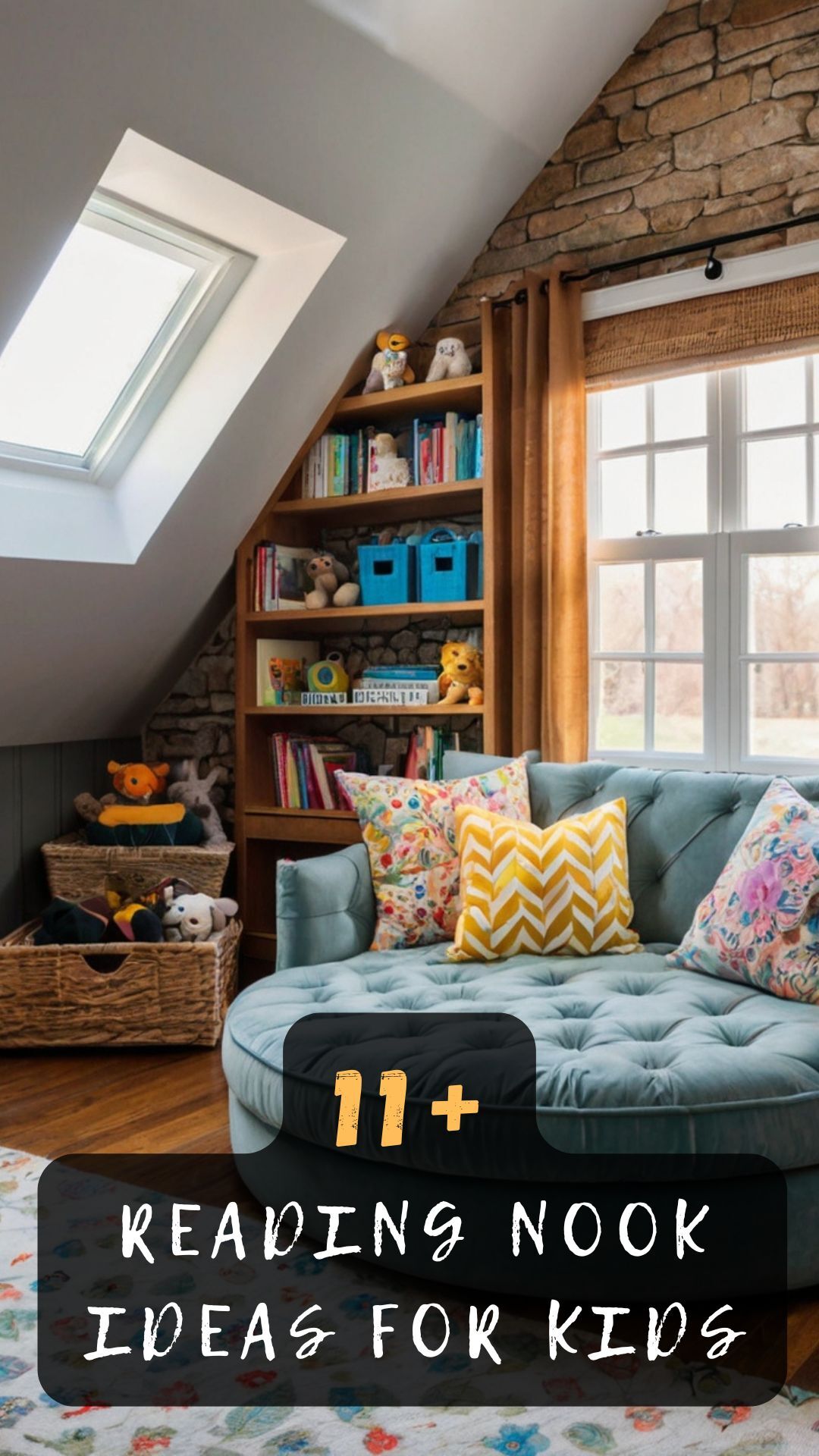 Make sure to include some storage nearby, like a small bookshelf situated underneath or beside the window, where your child can keep their current read and other favorites within easy reach.