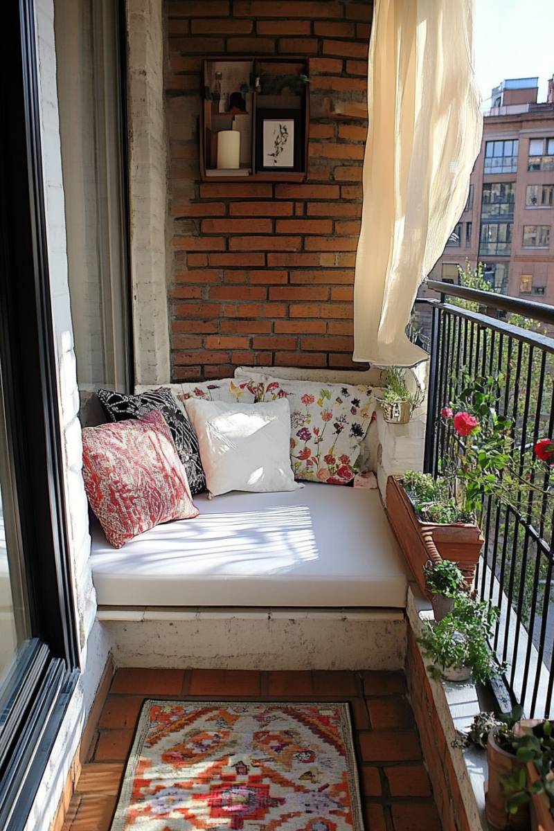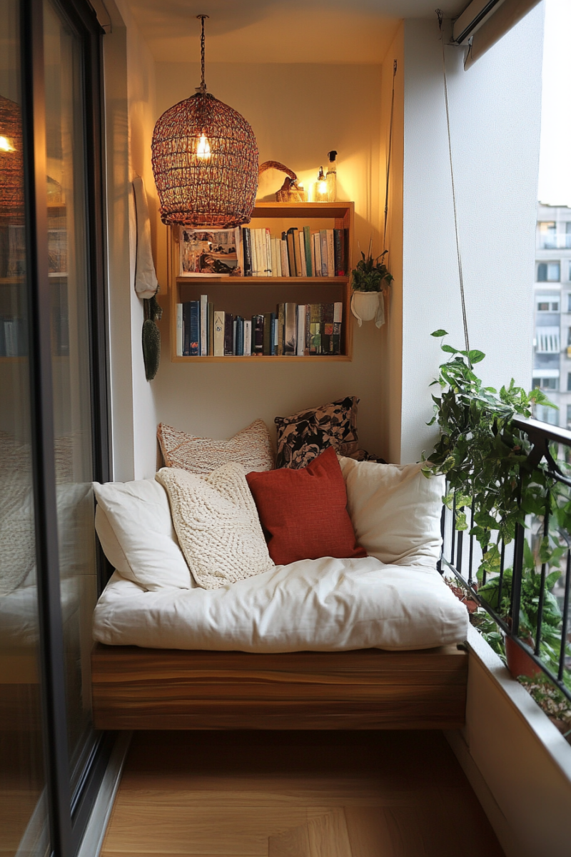 Balconies often feel like wasted space, but a private reading corner maximizes function.