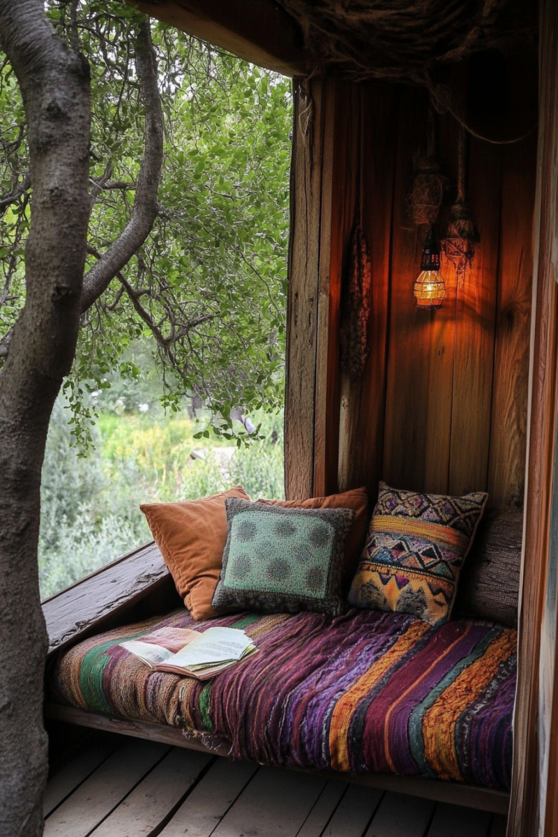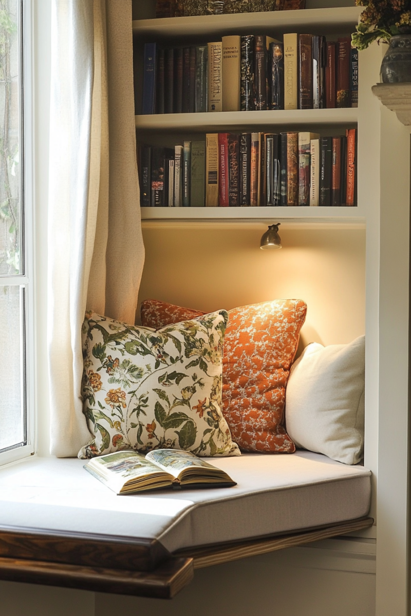 To create this cozy nook, you can install a cushioned bench or built-in seating right in the windowsill.