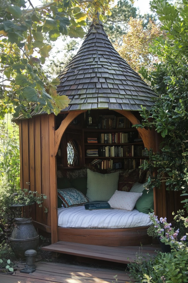 If you have a good-sized deck or patio area, consider building a tiny reading hut or clubhouse.
