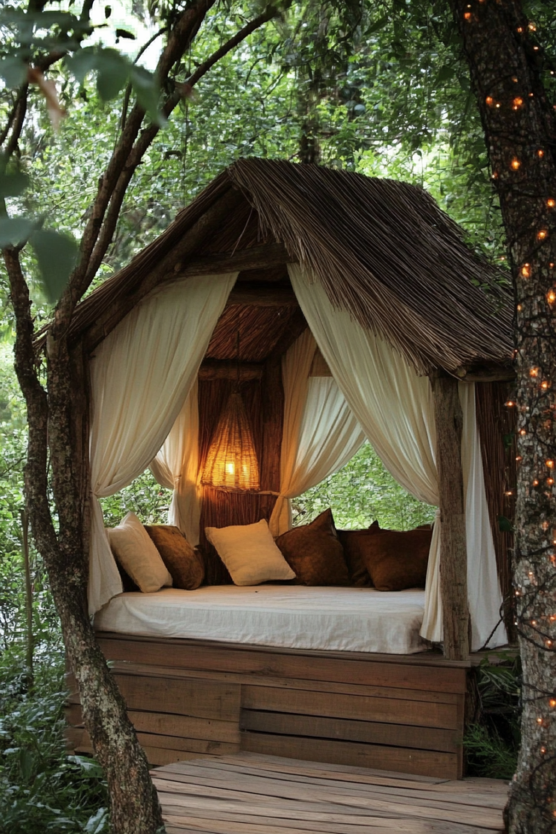 With ample cushions and soft lighting, it’s easy to transport yourself to tranquil fictional lands right from this serene, suspended perch.