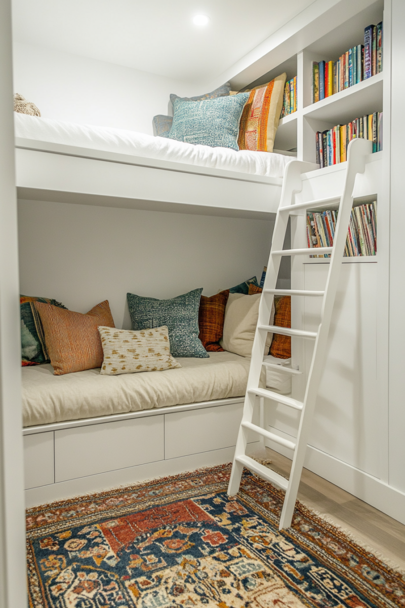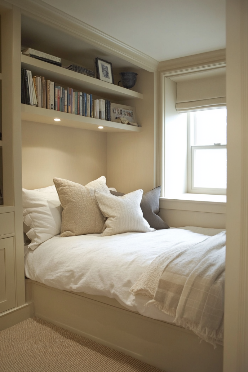 With a built-in bookcase nook, you’ll gain valuable storage for your reading material plus a secluded spot to get comfy and lose yourself in a book.