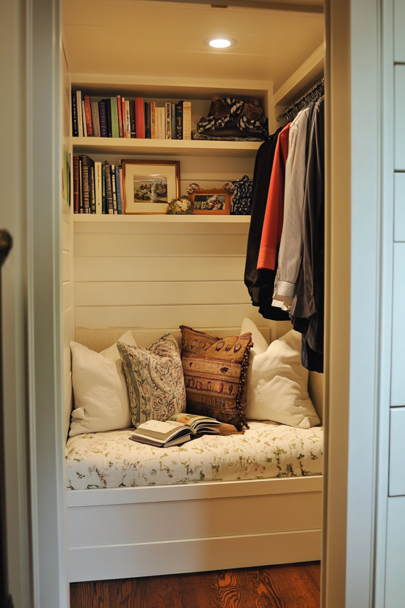With the right touches, even the smallest closets can feel like cozy reading escapes.