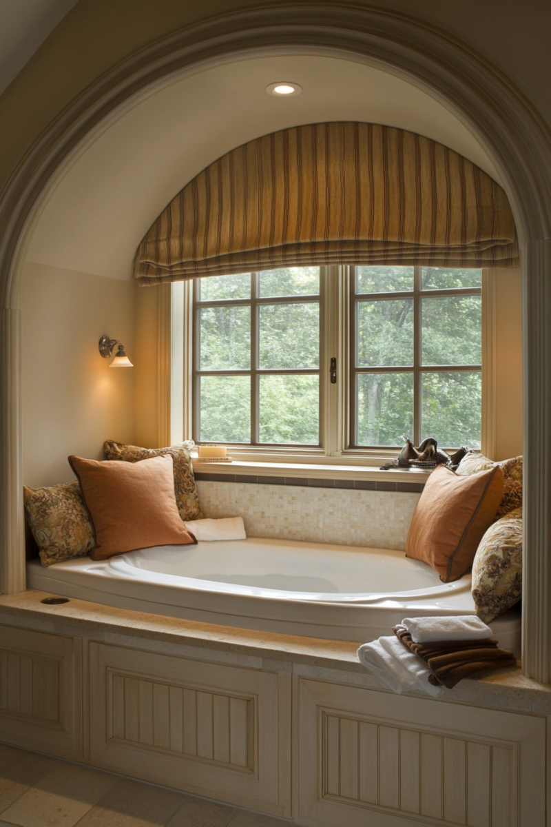 A thoughtfully designed tub nook sets the stage for complete relaxation.