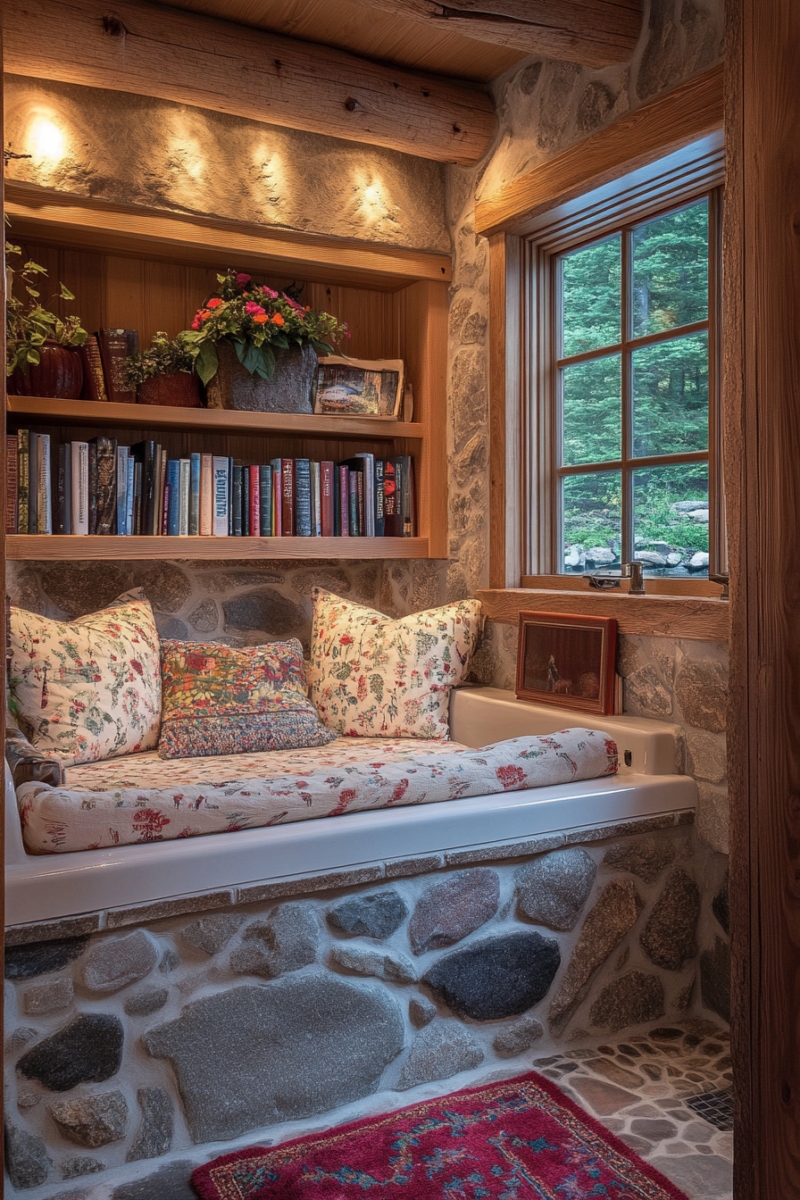 Choose a comfortable cushion or upholstered material to invite reading for hours.