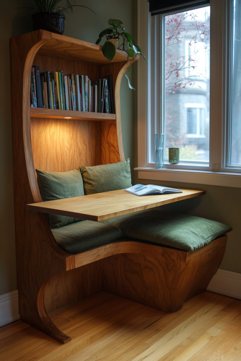 The tucked-away window seat also promotes concentration by offering a semi-secluded reading spot.