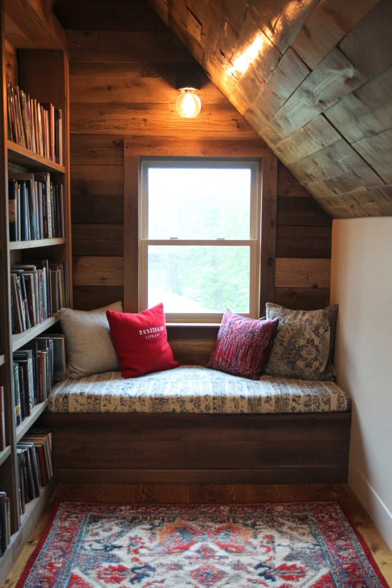 A creatively designed attic reading nook delivers charm along with seclusion.