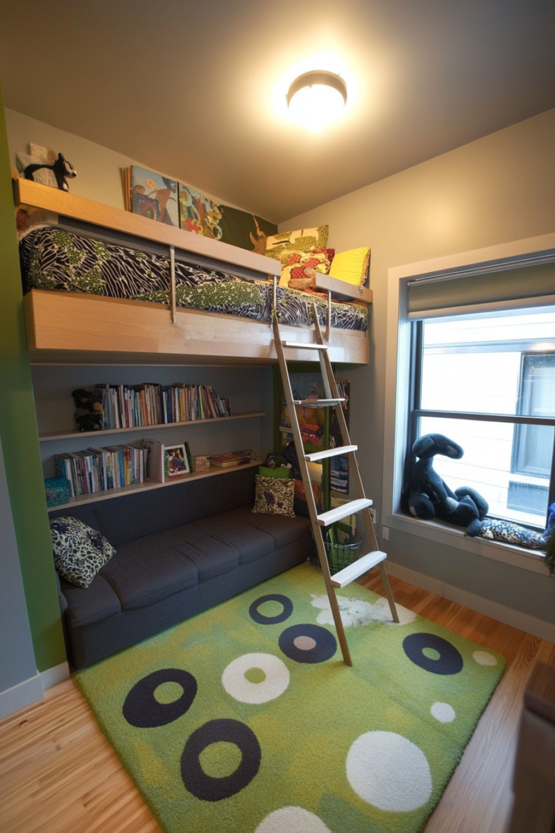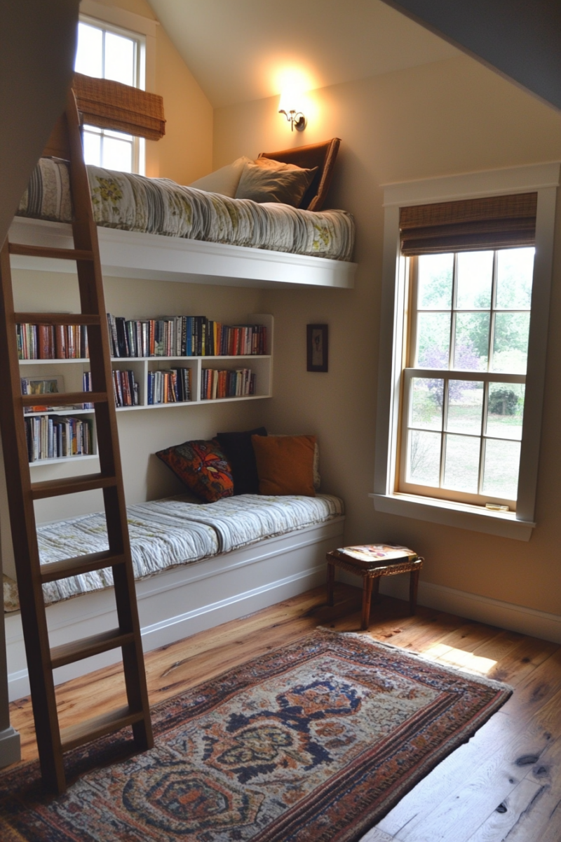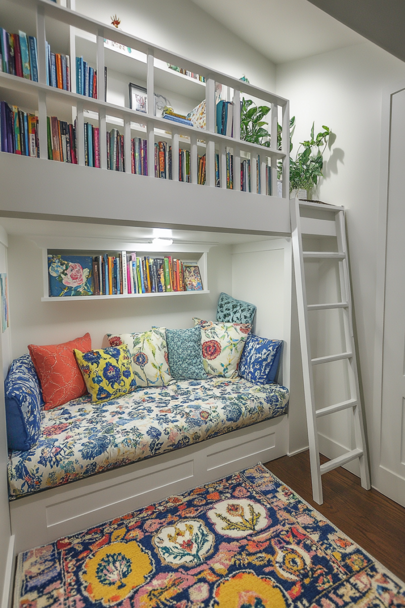 First, add wall-to-wall shelving under the ladder for an abundant book collection.