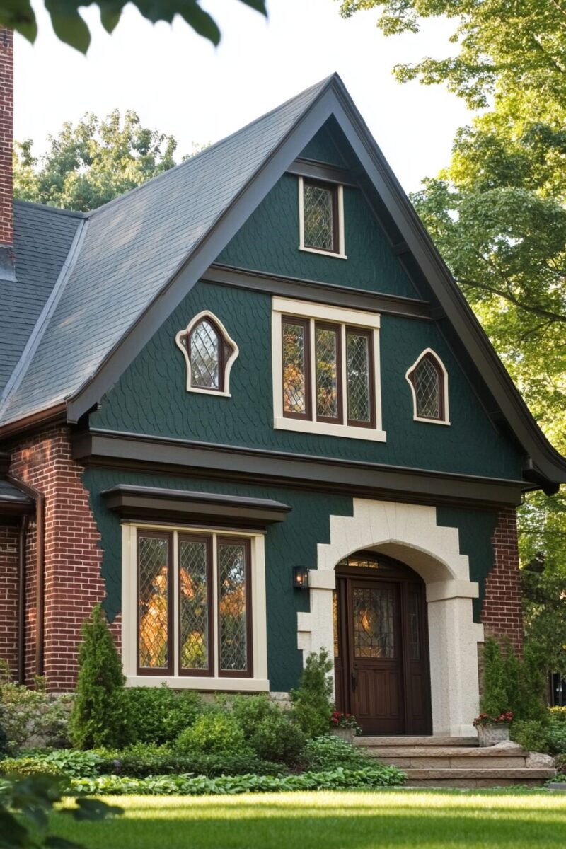 Using forest green on shutters, doors, and architectural details grounds your home visually and creates a sense of permanence and stability.