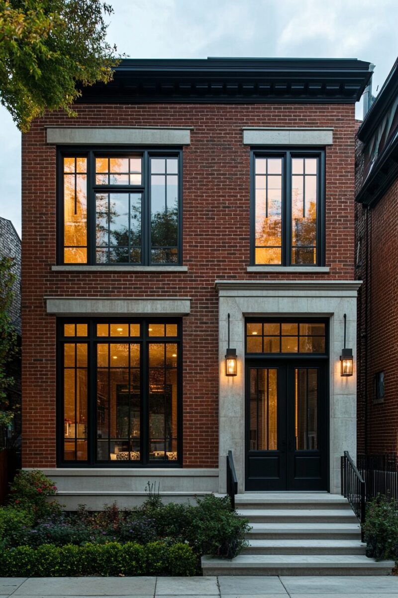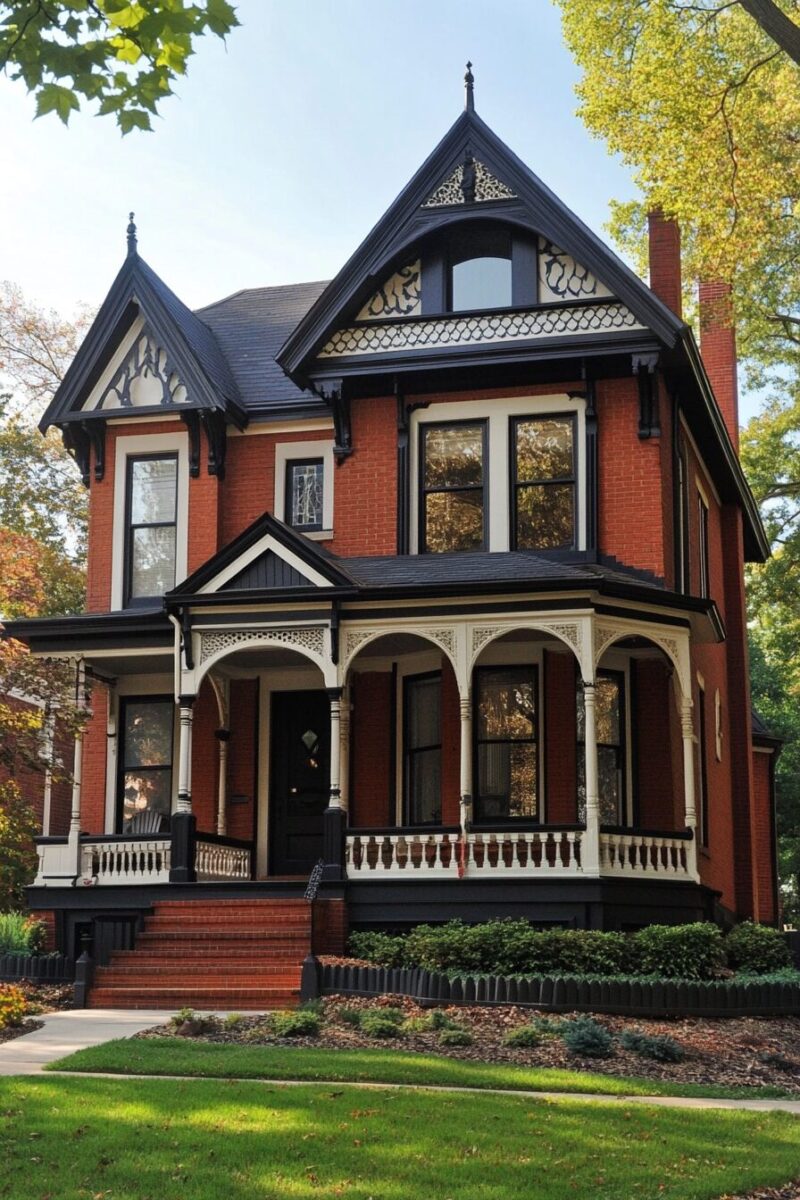Nothing complements red brick quite like crisp white trim paired with bold black accents.