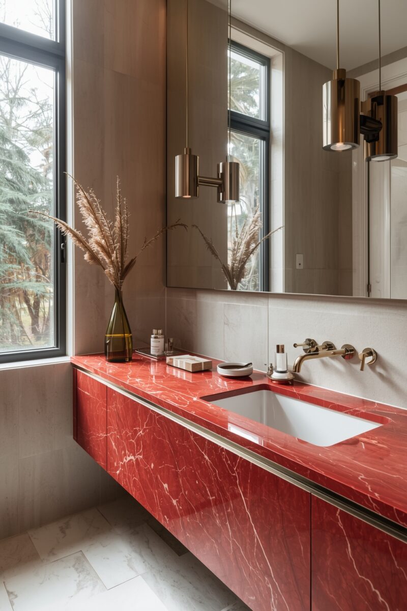 When I first saw a red marble vanity in a boutique hotel bathroom, I stood there for an embarrassingly long time just… looking at it.