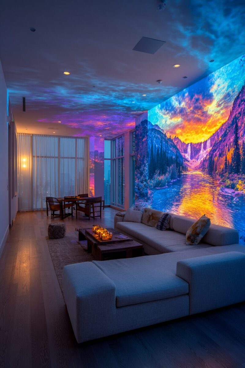 The ambient lighting quality of projected images adds a dimensional glow that traditional wall art can’t achieve, creating atmospheric effects that transform the entire room.