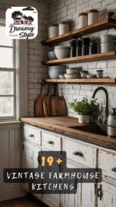 Soft farmhouse accents keep the vintage kitchen fresh and livable for real life.