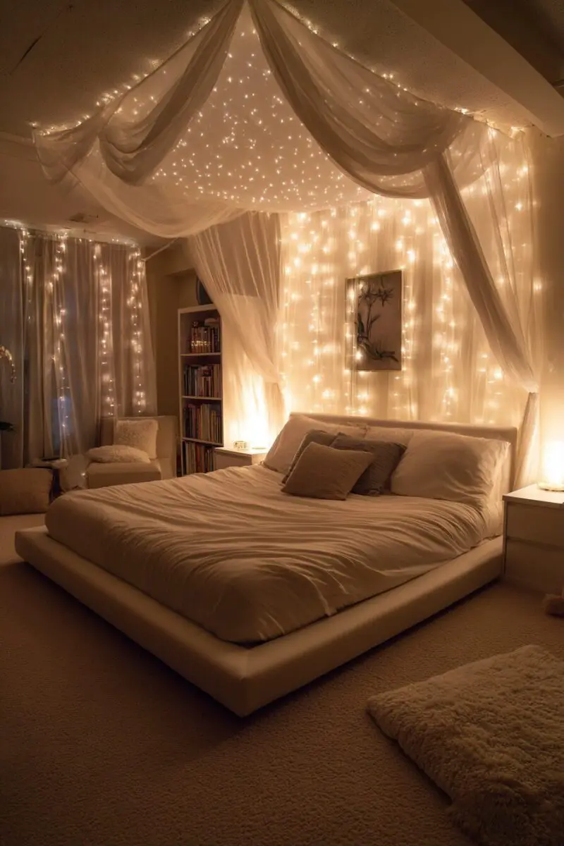 When you and your partner slip into bed, the fairy lights and drapes aren’t just decoration—they become part of the experience.