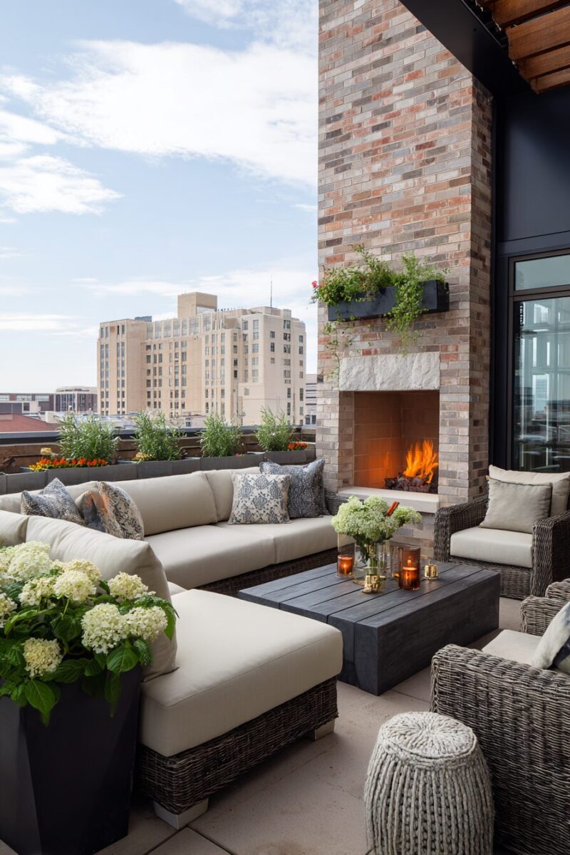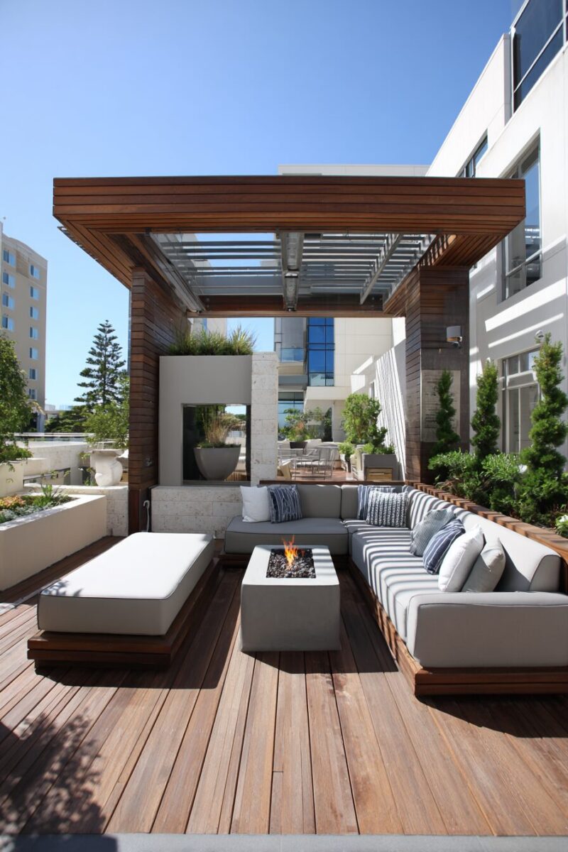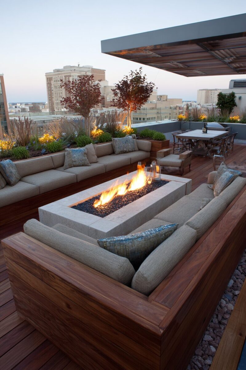 This design creates a rooftop that becomes the ultimate destination for hosting memorable gatherings where the fire serves as both warmth and entertainment.