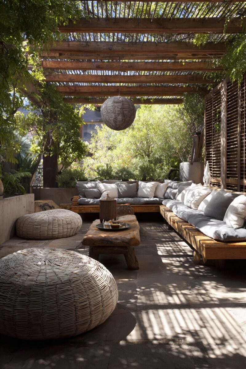 Include tapestries or outdoor curtains that can be hung from pergolas or posts to add privacy while introducing rich textures and patterns.