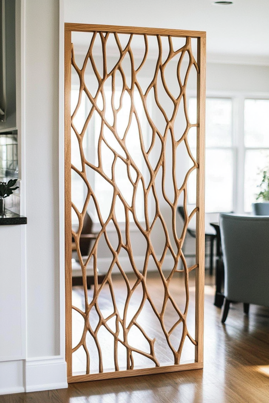 If you want a room divider that looks like built-in millwork, consider making a fretwork trellis.