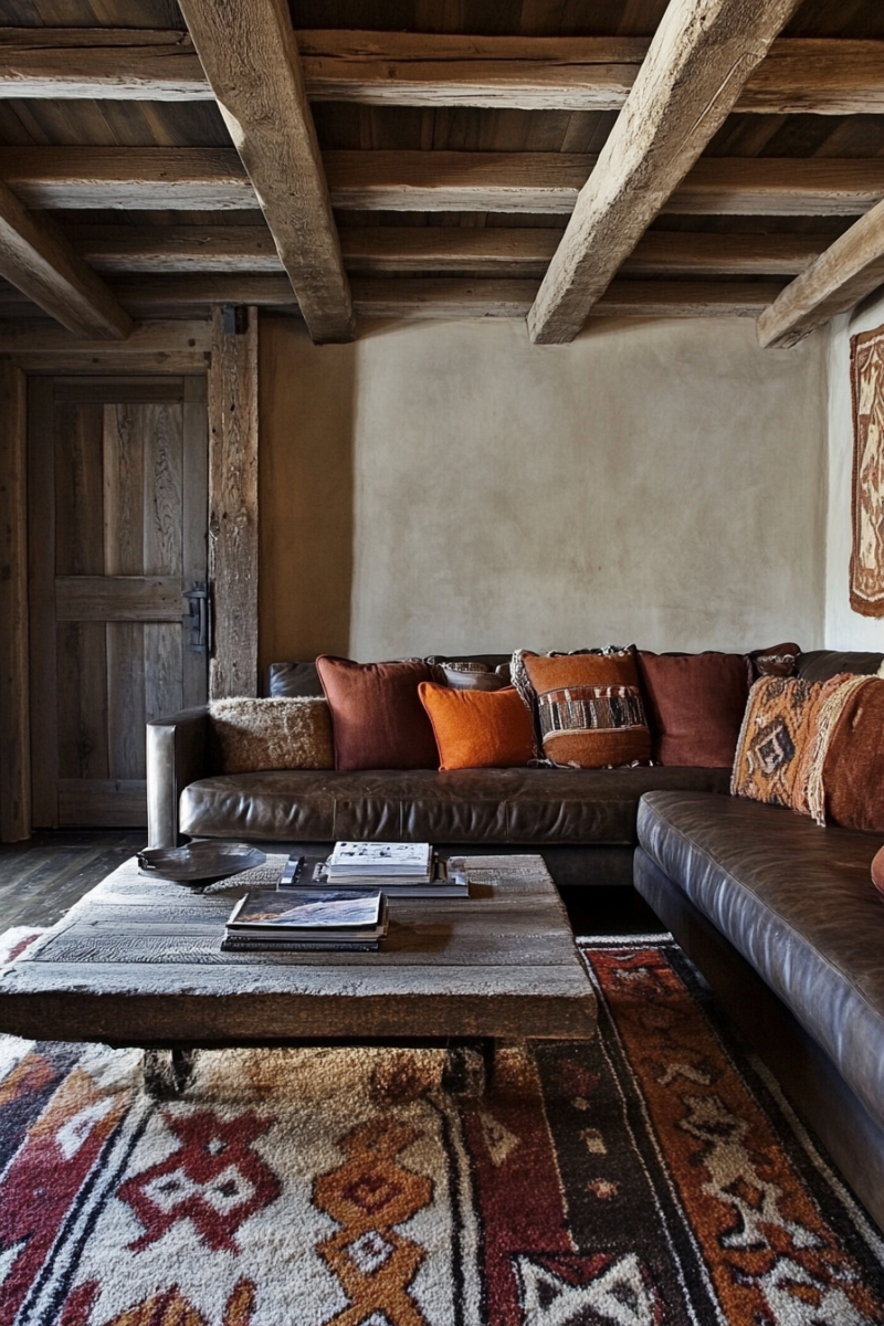 One of the easiest ways to create a rustic vibe is by incorporating exposed wooden beams.