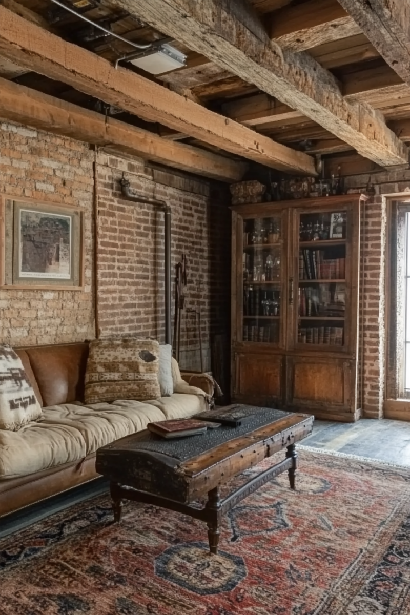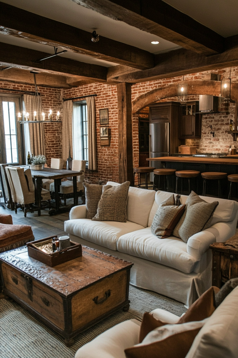 Exposed brick pairs beautifully with other rustic elements like wooden beams, leather furniture, and industrial lighting.
