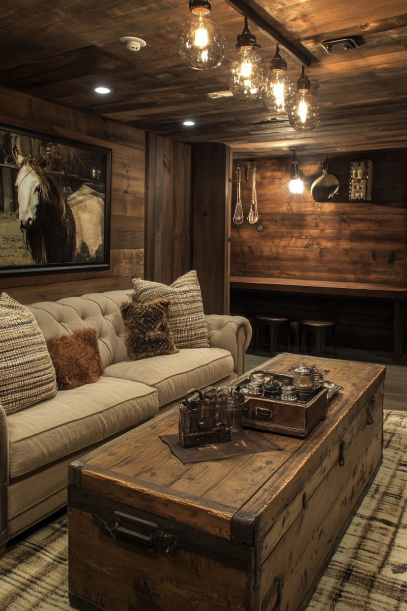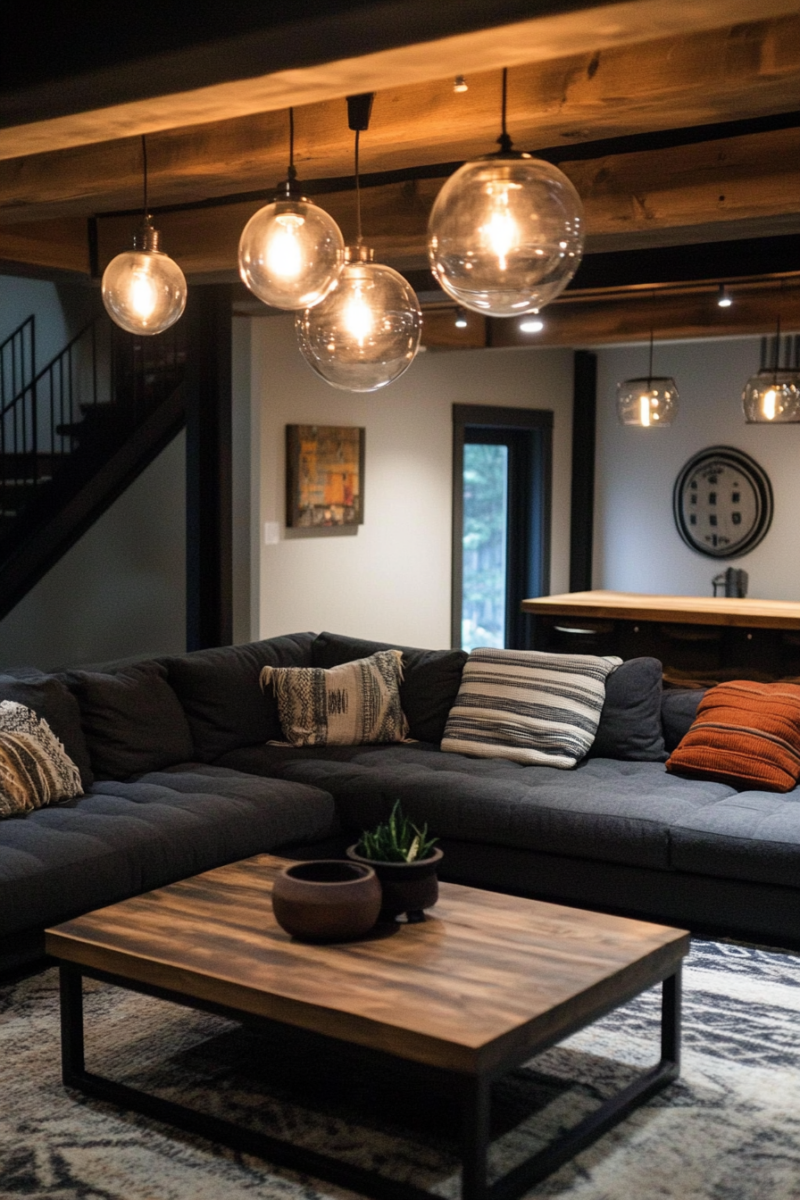 Lighting plays a crucial role in setting the tone for your rustic basement.