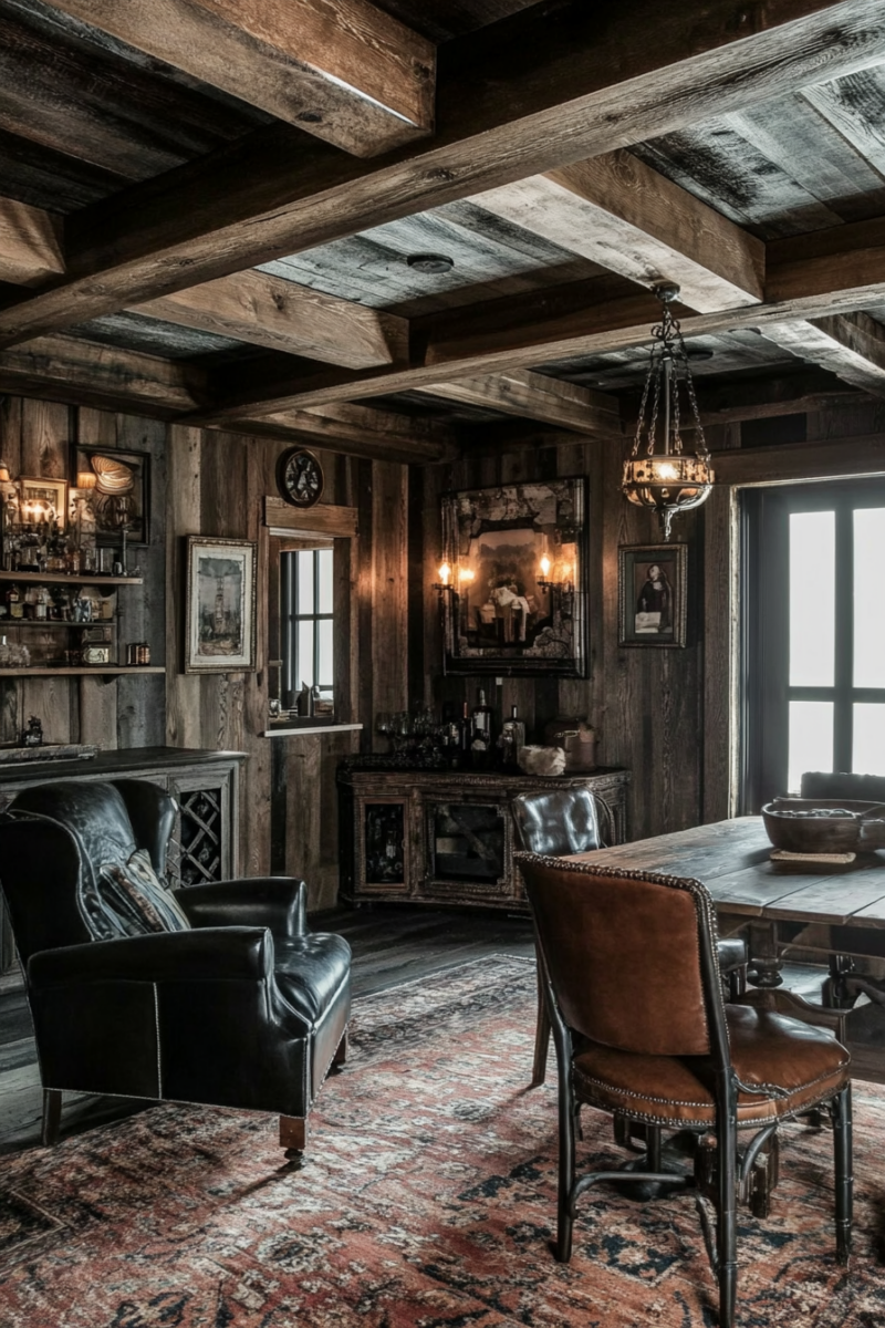 If you want to go a step further, consider hanging vintage-style lanterns or Edison bulb fixtures from the beams.