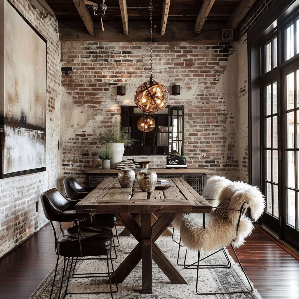 Modern Rustic Dining Room with Exposed Brick