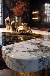 Pair with glass pendant lights and refined leather or velvet chairs.