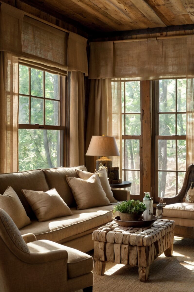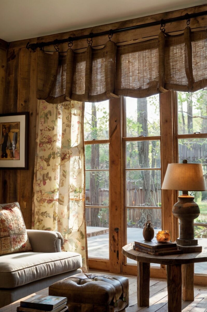 Embracing the humble origins of rustic style, burlap or grain sack curtains offer affordable charm with significant visual impact.