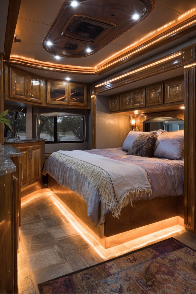 Proper lighting transforms your RV from a dim, cave-like space into a bright, welcoming home that feels spacious and comfortable at any time of day.