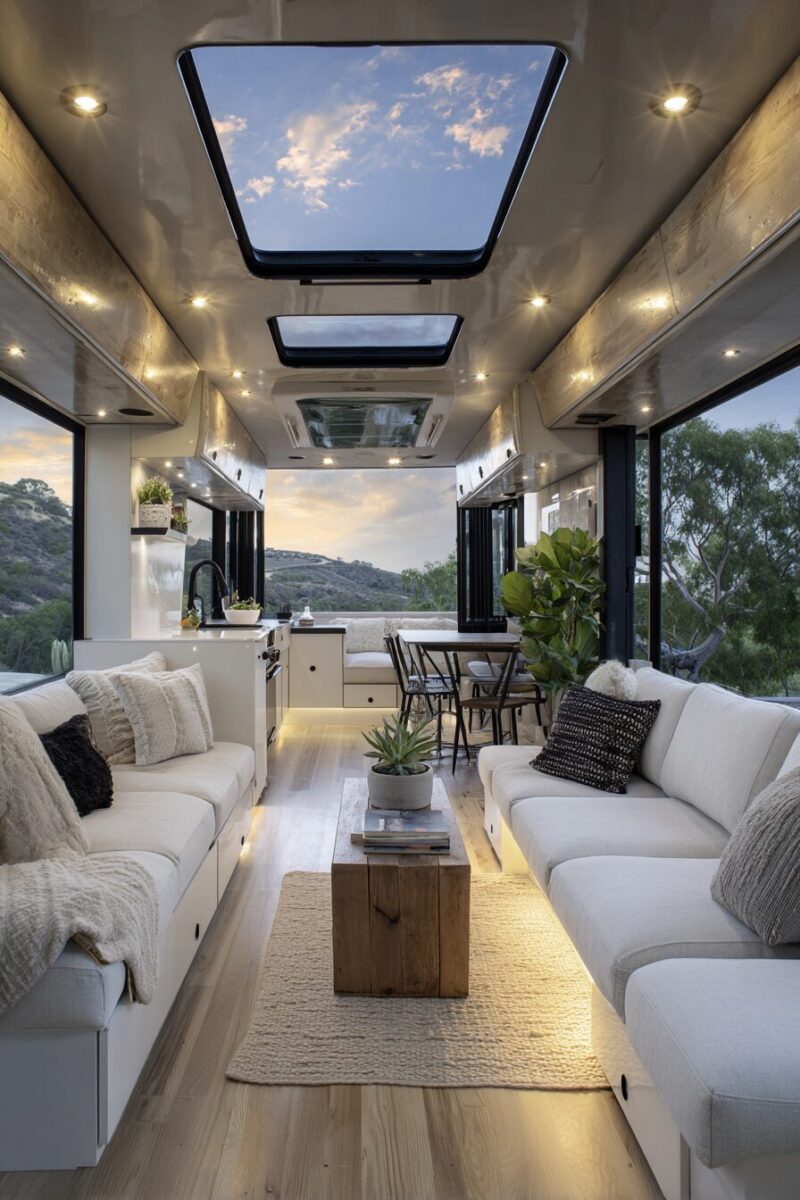 Skylights or additional windows flood your space with natural light during the day, making your interior feel more connected to the outdoors and less claustrophobic.