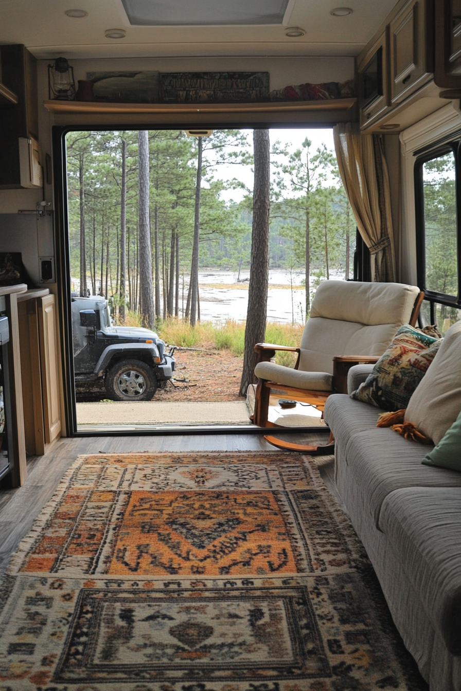 Infusing personality into the RV living room with special accents ensures it feels welcoming.