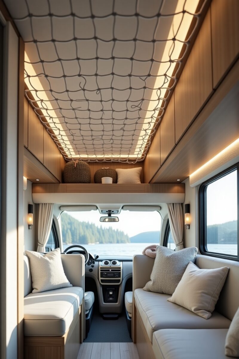 What makes ceiling nets truly brilliant is how they convert otherwise decorative space into functional storage without sacrificing your RV’s livable area.