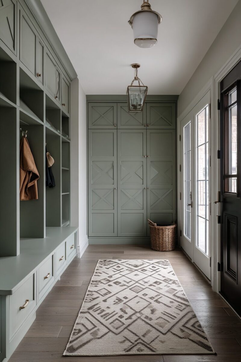 Your entryway sets the tone for your entire home, and there’s something absolutely magical about sage green that instantly creates a sense of calm and warmth.
