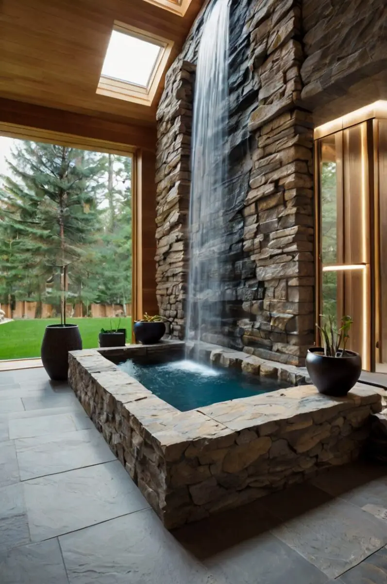 Nothing says luxury like the gentle sound of cascading water combined with the visual drama of natural stone textures creating a spa-like sanctuary in your own home.