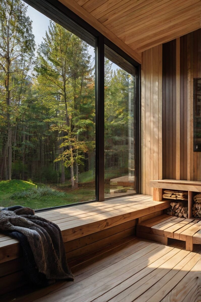 Large windows positioned to showcase your best landscape features turn every sauna session into a visual meditation that connects you deeply with nature.