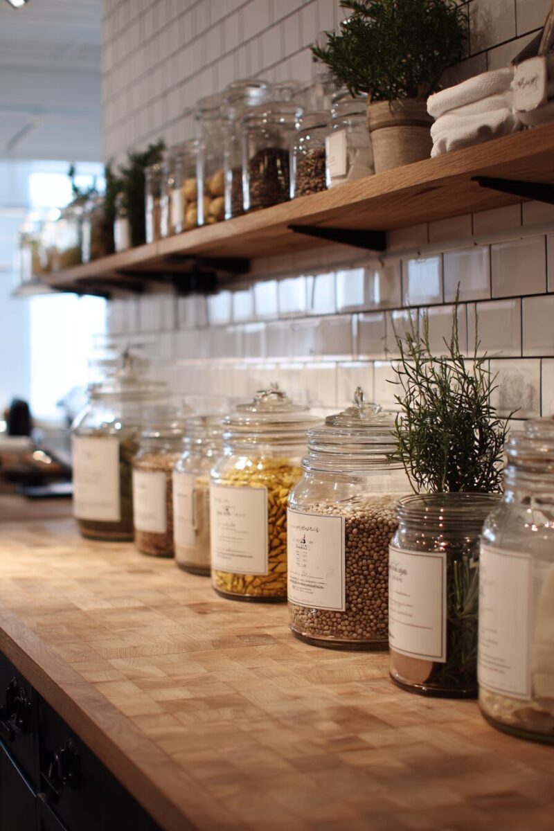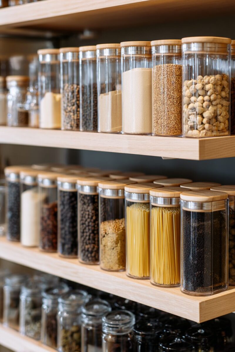 Choose clear glass containers that allow you to see the contents while creating a uniform, organized appearance.