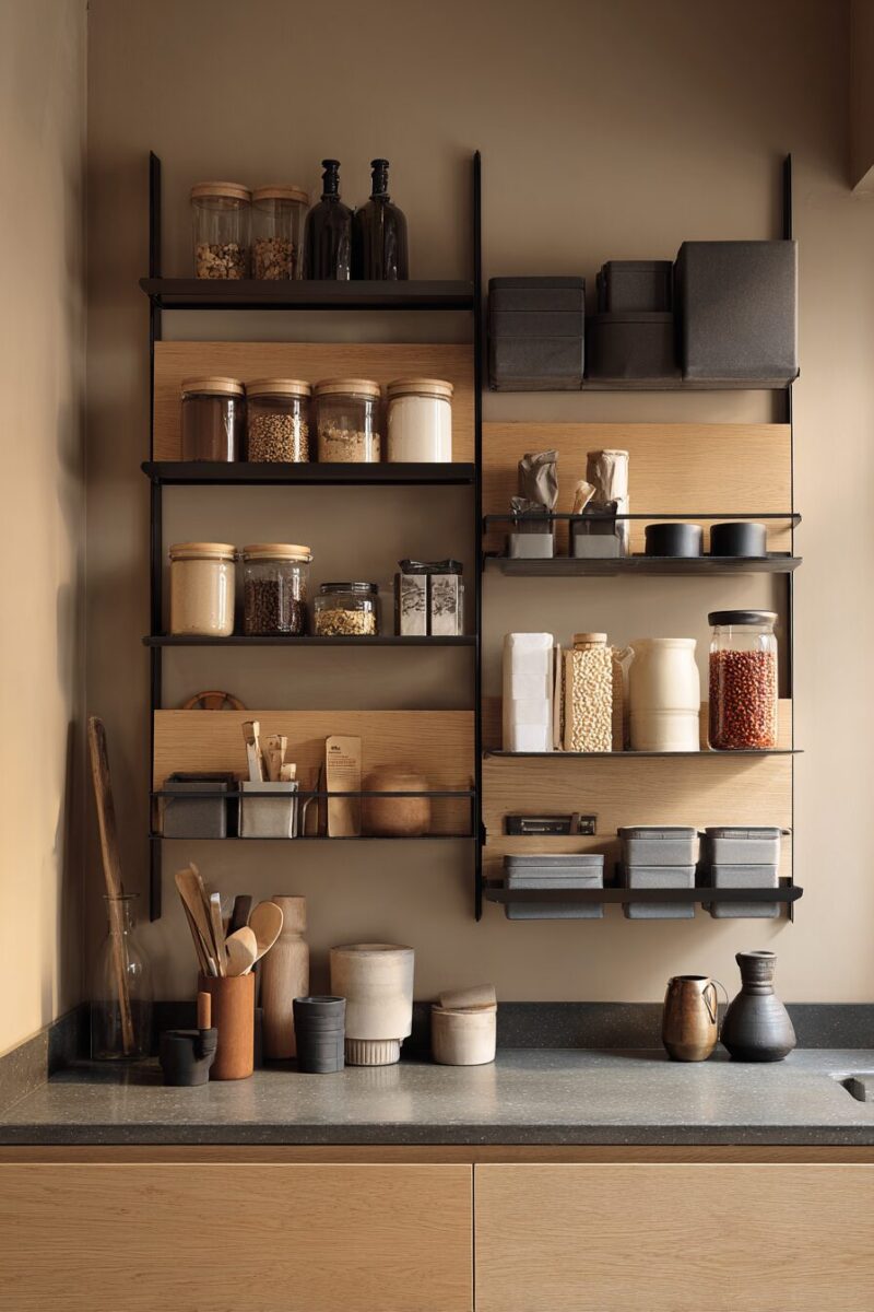 The natural materials add warmth to your pantry while creating a cohesive look that feels intentional rather than random.