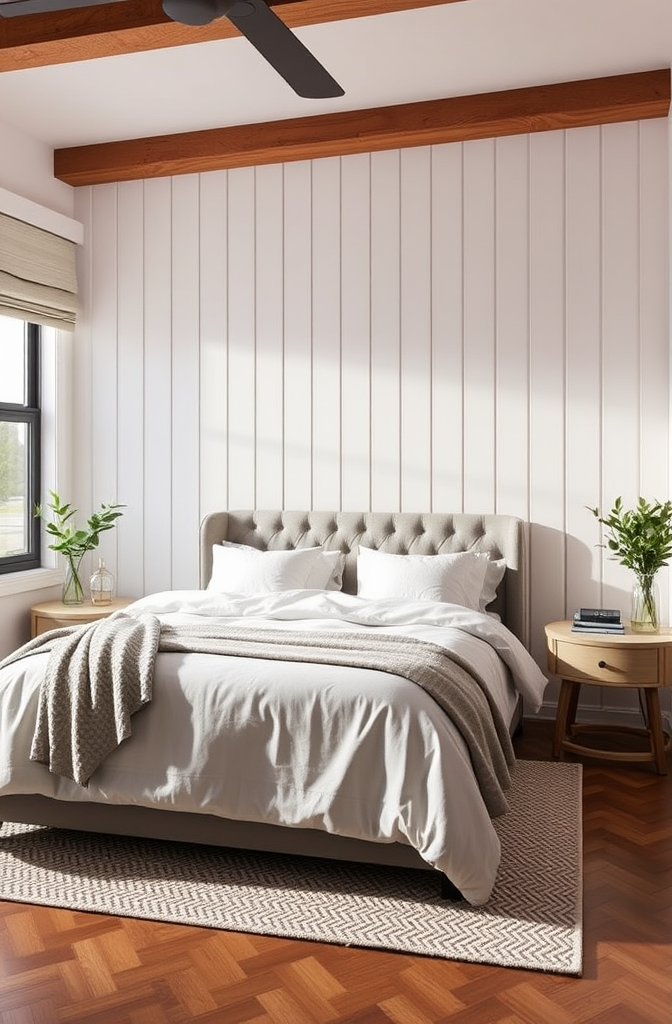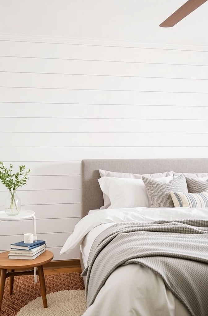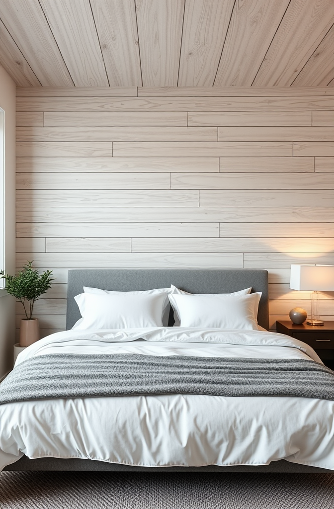 For maximum impact, consider installing horizontal shiplap on the wall behind your bed, creating a natural focal point that frames your bed like a work of art.