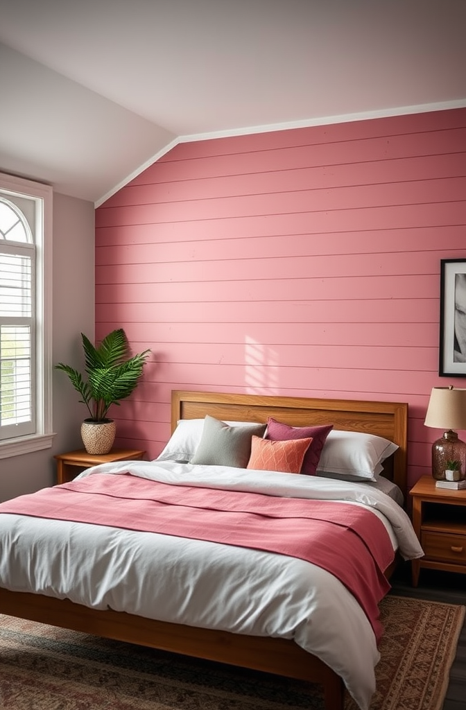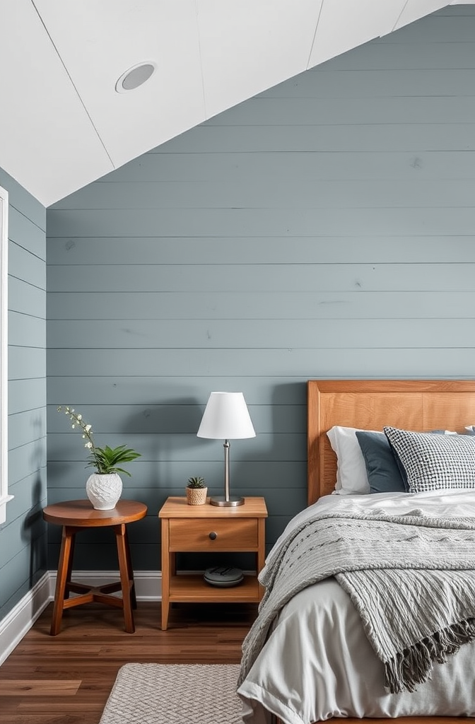 Vibrant colors on shiplap create a perfect backdrop for neutral furnishings, allowing your bedroom’s architecture to become the statement.