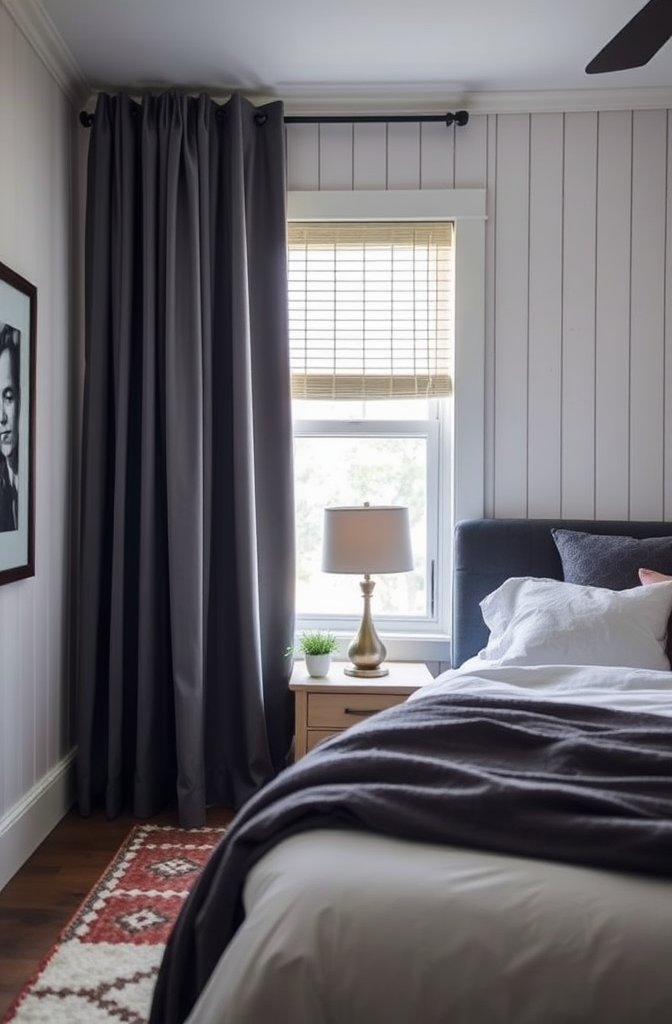 Even small bedrooms can handle dark shiplap when strategically balanced with proper lighting and reflective surfaces.