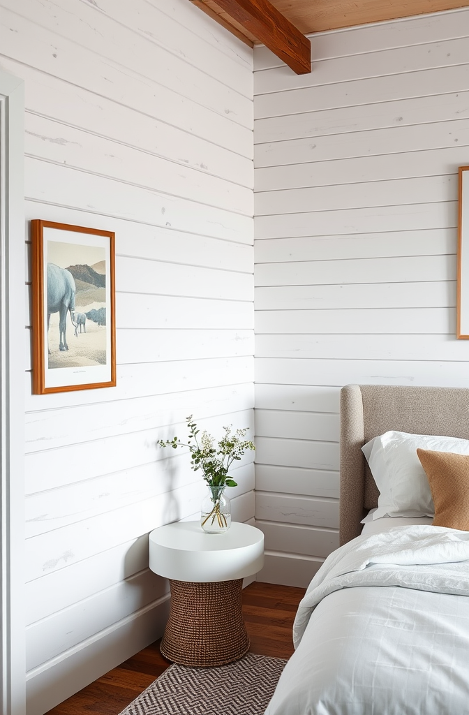 Whitewashed shiplap creates the perfect neutral backdrop for both colorful accents and monochromatic styling approaches.