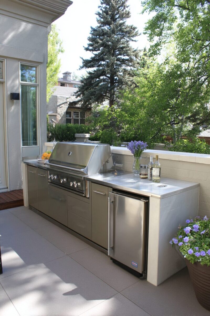 Light colors for major surfaces make small outdoor kitchens feel bigger and brighter, especially in partially shaded areas.
