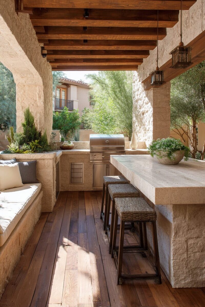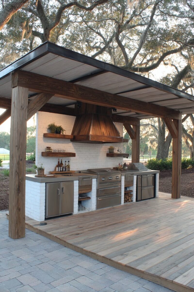 Include proper ventilation in your covered outdoor kitchen design to prevent smoke buildup, especially if you’re using a grill under the structure.