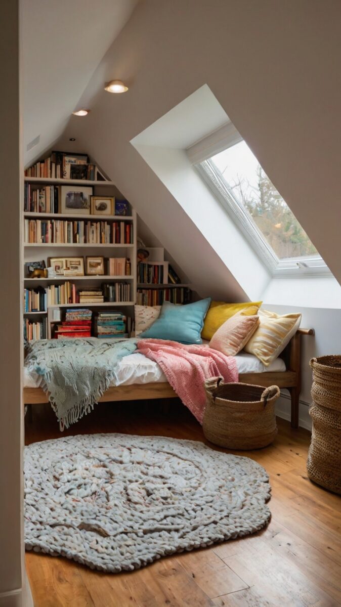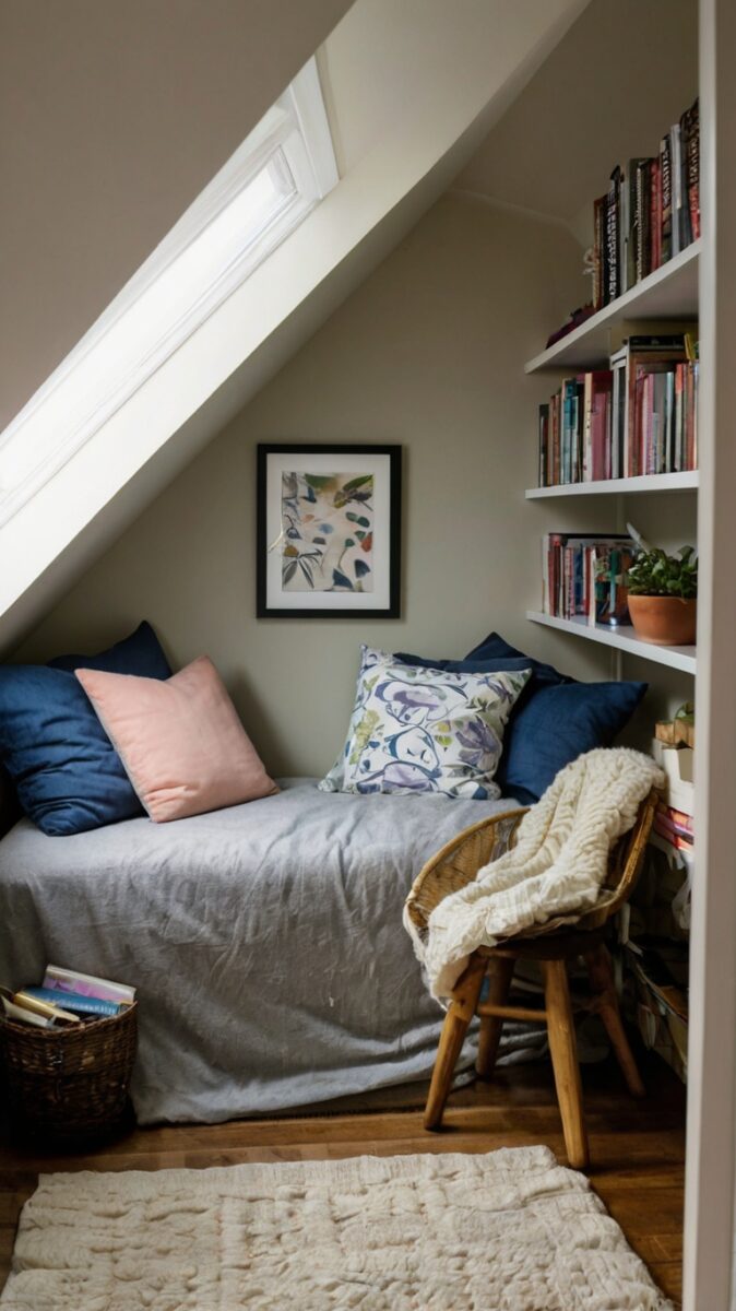 The sloped ceiling actually makes the nook feel more intimate and protected.